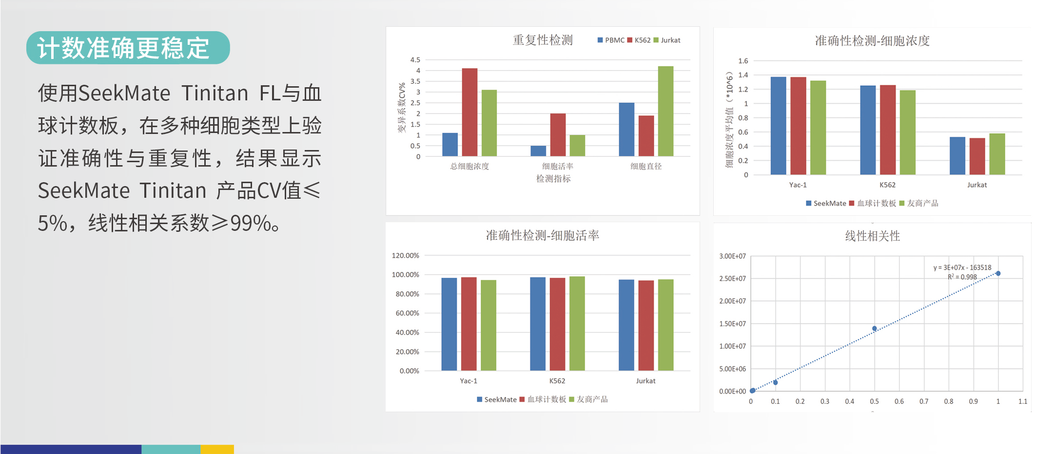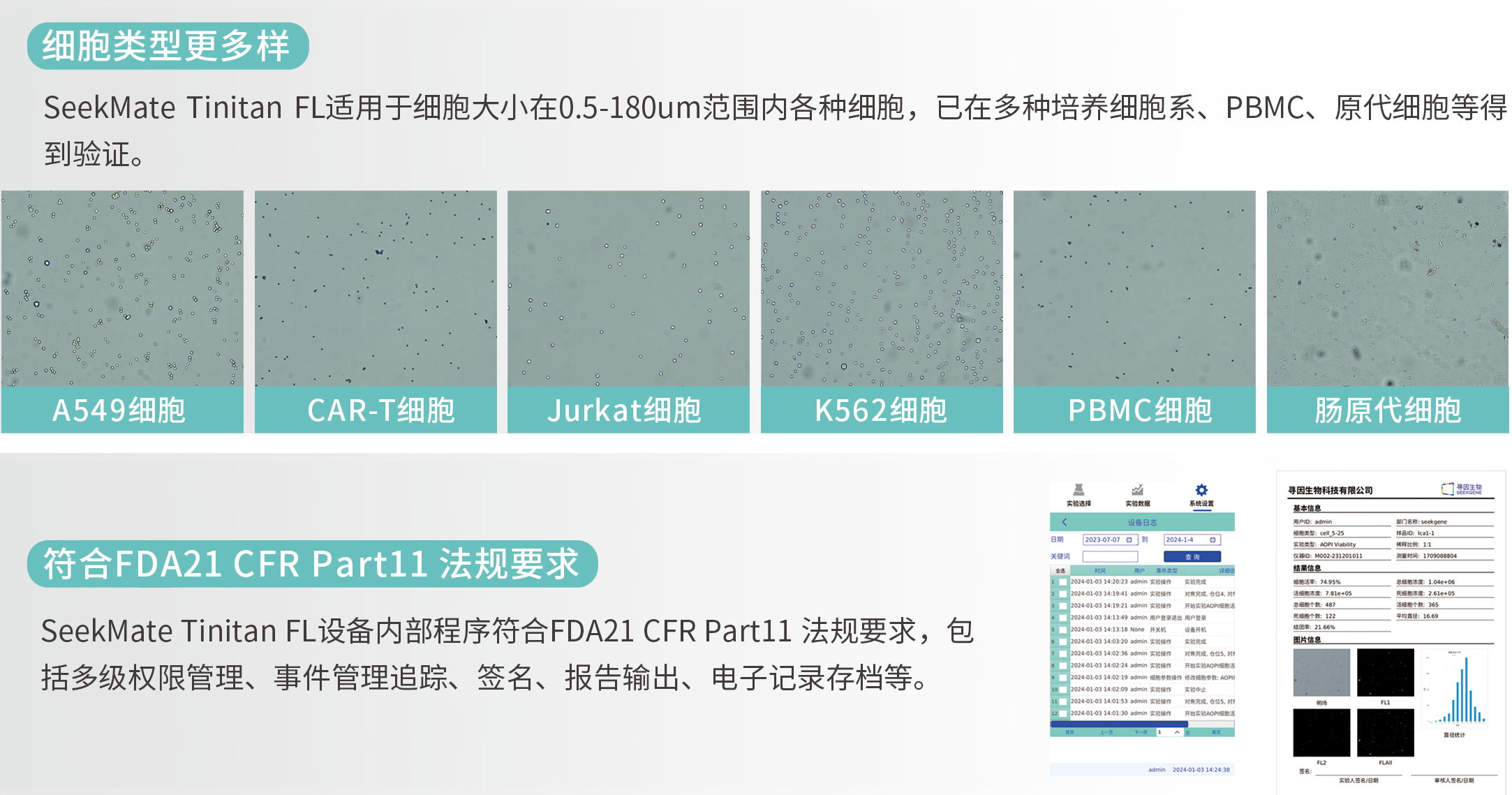 SeekMate Tinitan 荧光细胞分析仪(SeekMate Tinitan FL)是寻因生物自主研发的一款基于明场和荧光场双模式开发的高效荧光细胞分析仪,该产品采用最新的光学元件搭载双调焦模式,获取清晰图片,并引入AI深度学习,个性化参数调节为更多的细胞类型(包括原代细胞、细胞核)提供准确、稳定的细胞计数解决方案。同时,该机器机身轻巧且兼容移动电源,外出携带便捷,可在任意细胞实验室开展细胞计数工作。设备小巧、功能齐全,是值得信赖的具有精准计数、信息维度拓展、灵活便捷的掌上“计数专家”。